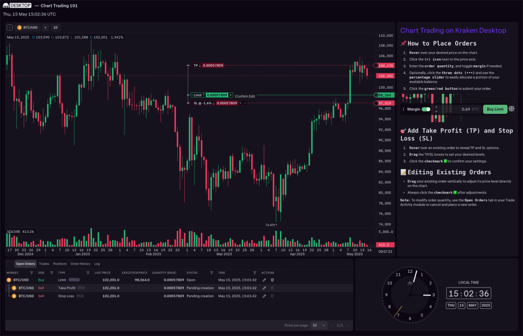 借助 Kraken Desktop 的新Markdown 模块,您可以将丰富的格式化注释、图像和链接直接固定在图表和阶梯旁边- 这样您的下一个重要想法就不会在单独的笔记本或浏览器选项卡中丢失。