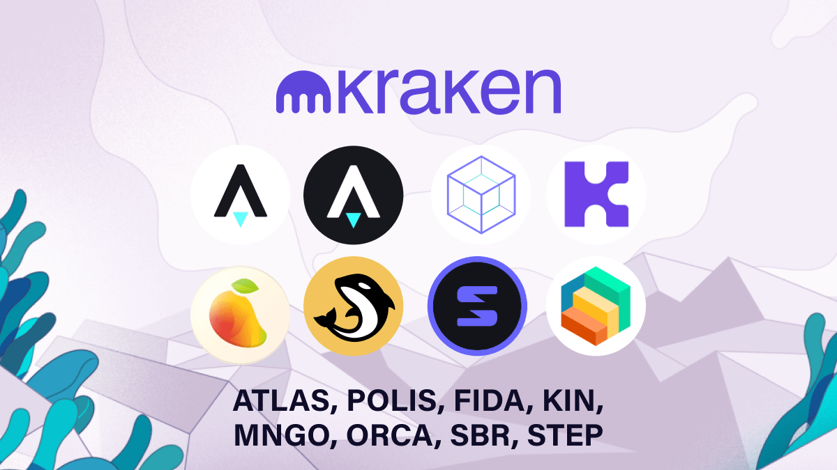 我们很高兴地宣布,Kraken 现在支持Mango (MNGO)、Kin (KIN)、Orca (ORCA)、Star Atlas (ATLAS & POLIS)、Bonfida (FIDA)、Step Finance (STEP)和Saber (SBR)!