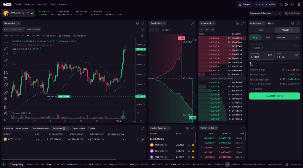 我们期待 Cryptowatch 的用户体验全新Kraken Pro界面的先进交易功能。Kraken Pro 专为满足最挑剔的交易者需求而打造,它不仅仅是一个现货交易平台,还支持保证金交易、合约交易以及权益质押选项,从而拓展您的加密货币交易策略。