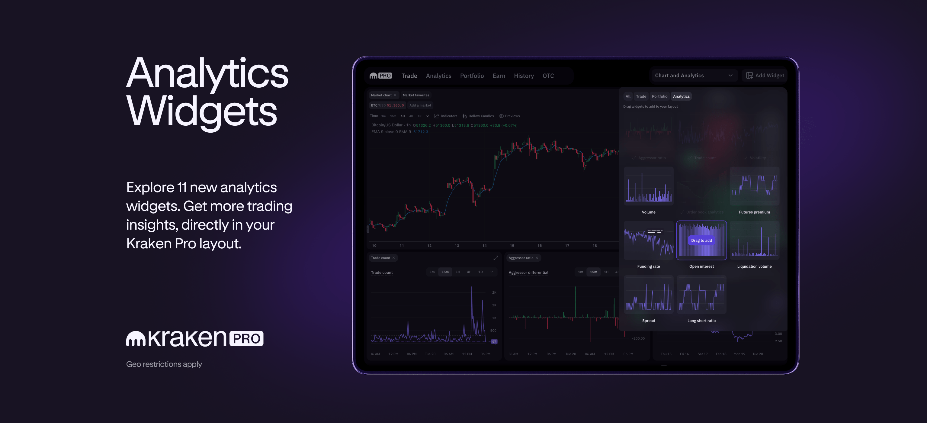 通过将新的分析小部件与 Kraken Pro 的可自定义布局工具集成,客户可以解锁大量针对现货和期货市场量身定制的交易策略。这种整合的方法不仅丰富了您的交易体验,还为您提供了自信而精准地驾驭加密货币市场所需的洞察力。