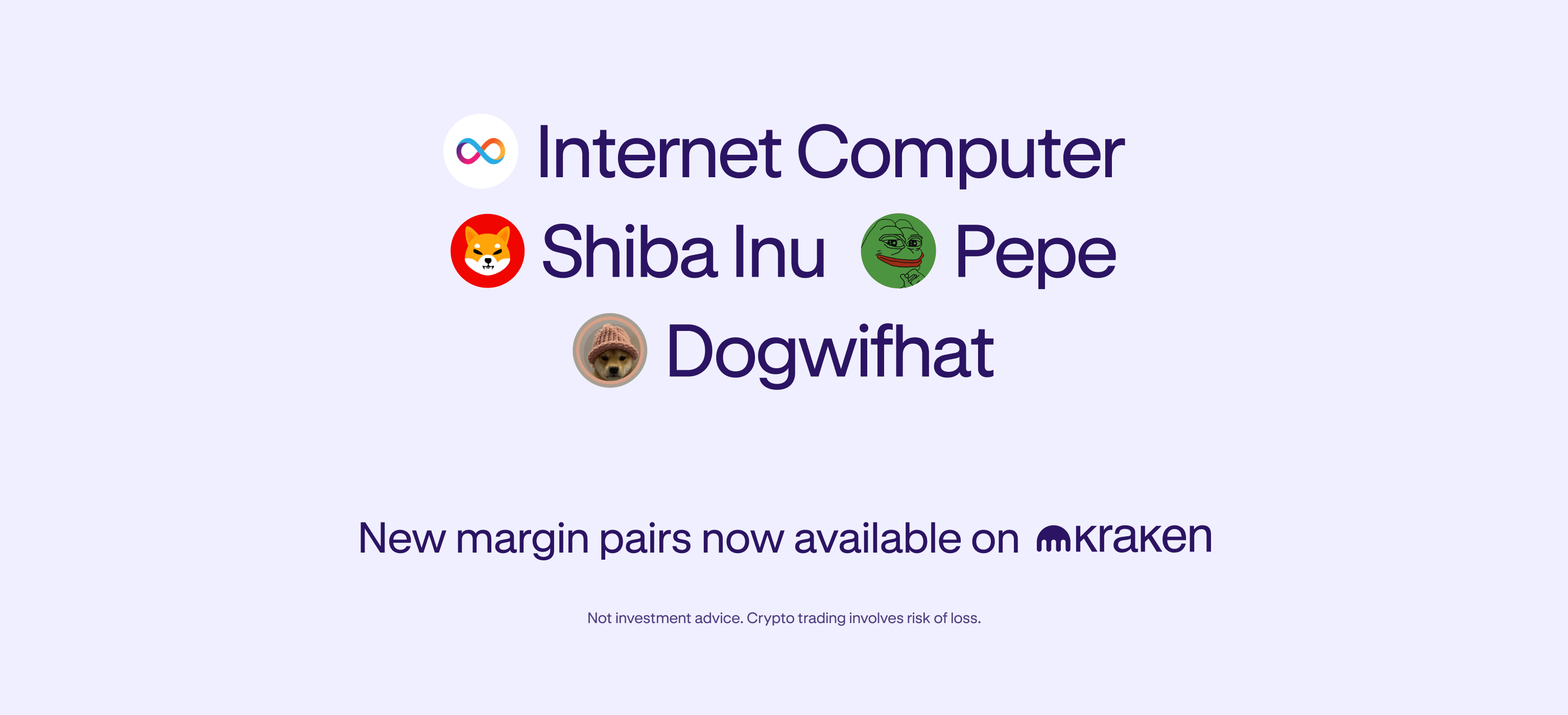 我们很高兴地宣布,Kraken 现在支持Internet Computer (ICP)、Pepe (PEPE)、Shiba Inu (SHIB)和DogWifHat (WIF)的新保证金对!