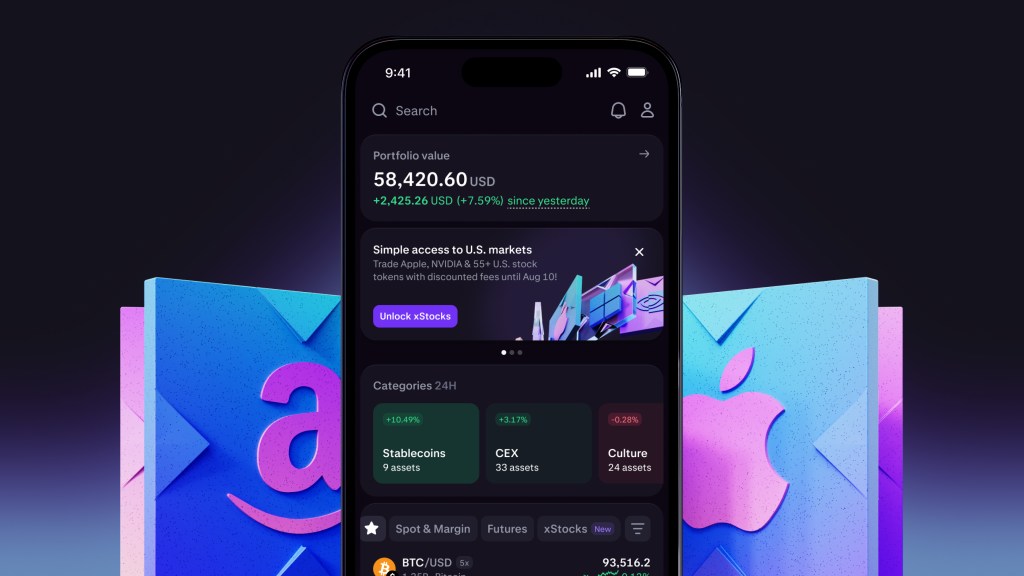我们已经推出了 60 种代币化资产,包括苹果 (AAPLx)、特斯拉 (TSLAx) 和标准普尔 500 ETF (SPYx) 等,并且我们将随着时间的推移继续扩大名单。