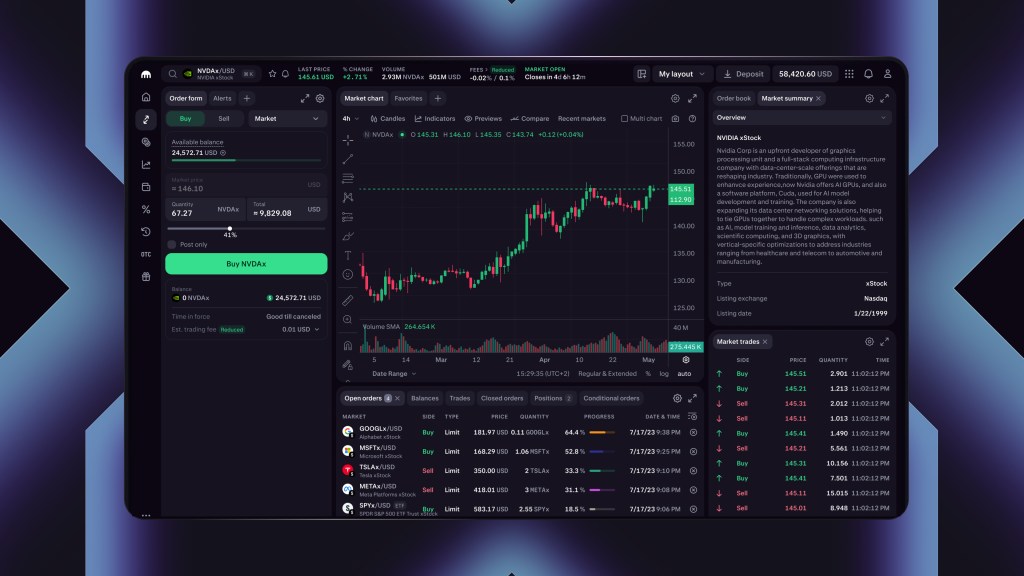 xStocks 使 Kraken Pro 成为交易者和投资者的终极平台,他们希望在一次无缝体验中获得一切——代币化股票、加密货币、衍生品等。