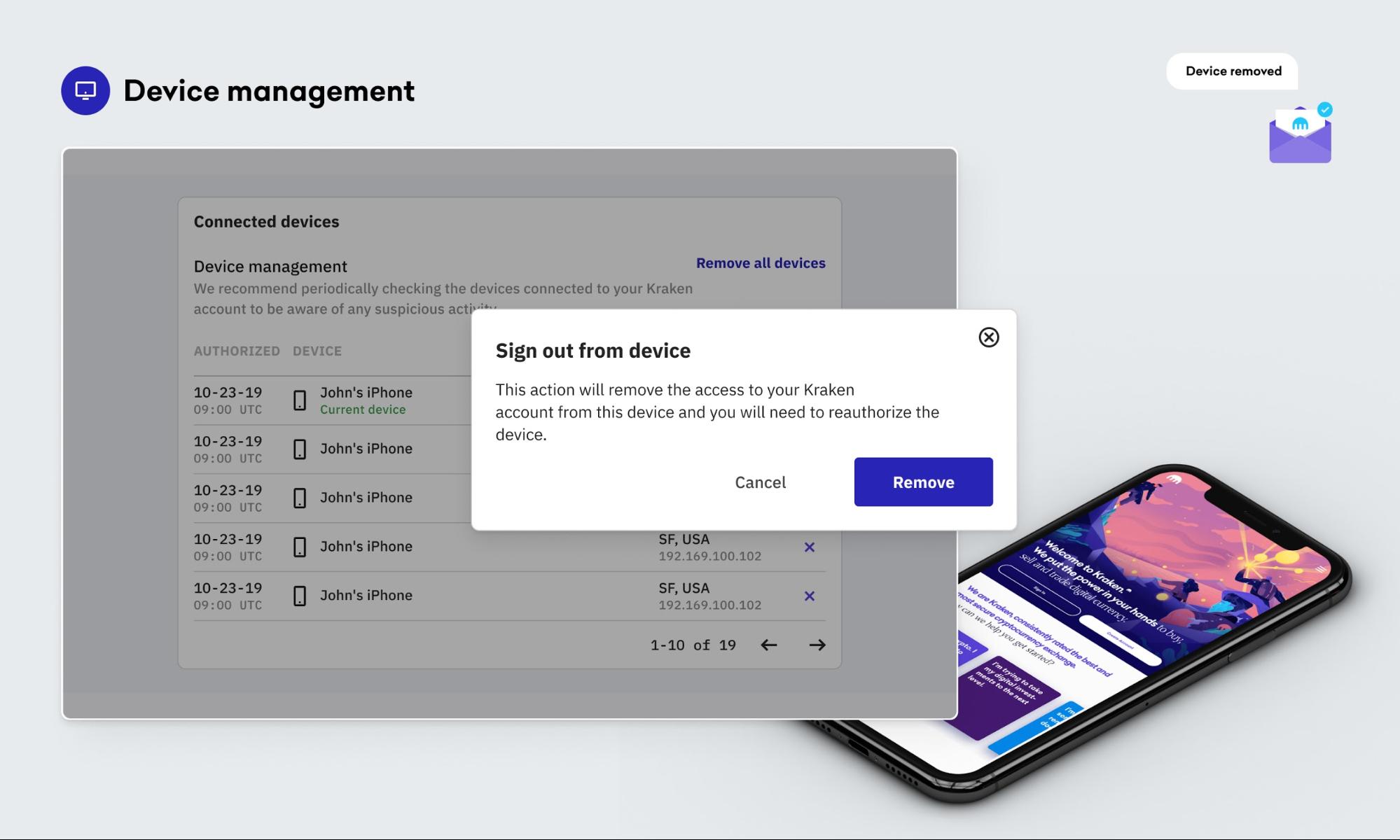请注意,如果攻击者也可以访问您的电子邮件,他们可能能够批准他们的设备 - 这是确保与您的 Kraken 帐户关联的电子邮件非常安全的众多原因之一,通过在那里添加 2FA。