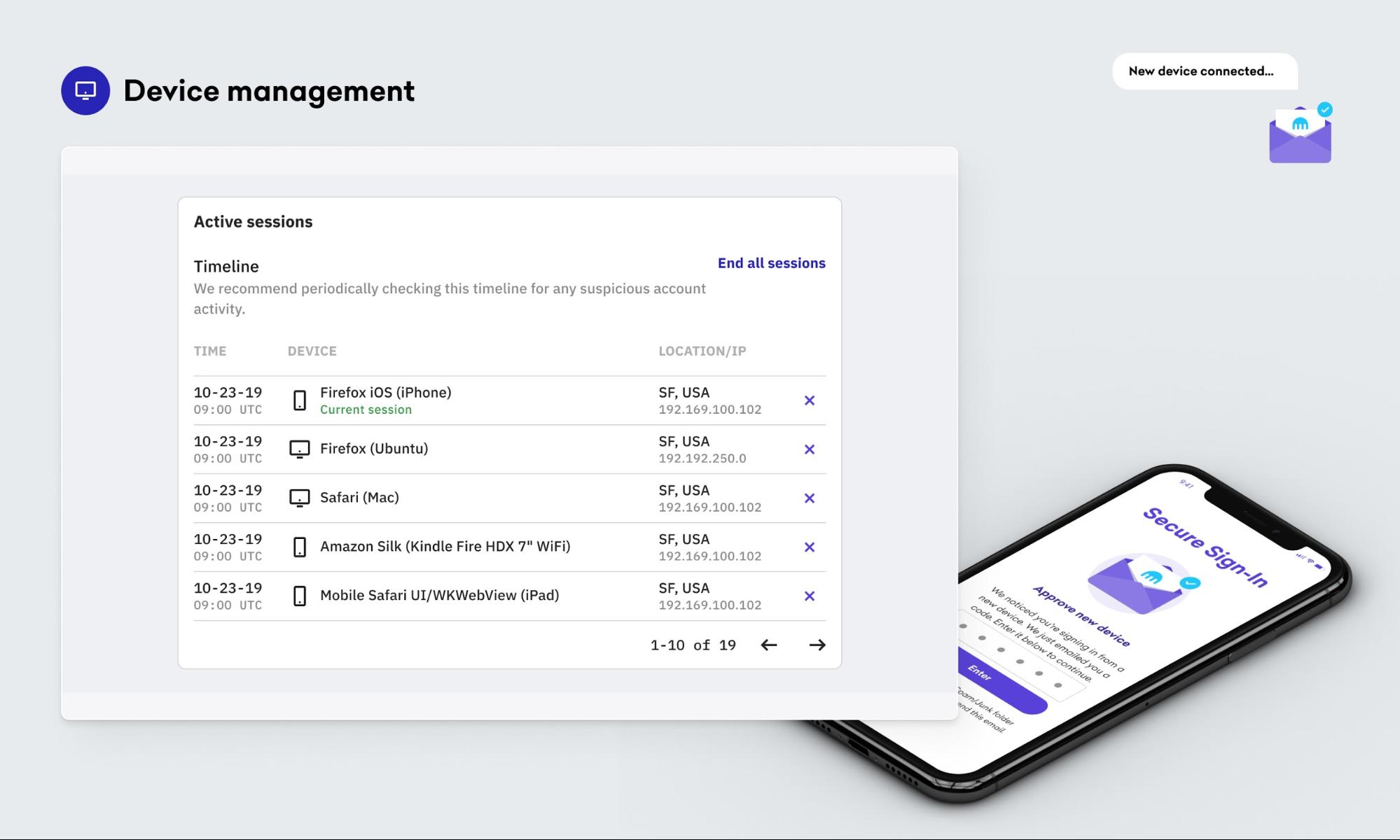 批准设备后,您还需要一个地方来查看和管理您的设备(甚至登录的会话)。今天,我们还发布了安全中心的更新,其中包含会话和设备管理功能。
