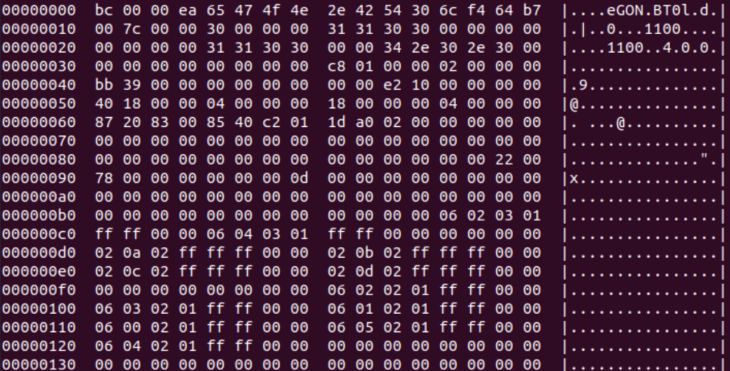 从闪存的第 5 个字节开始,可以找到字符串“eGON.BT0”。进一步研究表明,这是基于全志芯片的设备上早期引导加载程序的常见头部信息:https ://linux-sunxi.org/EGON
