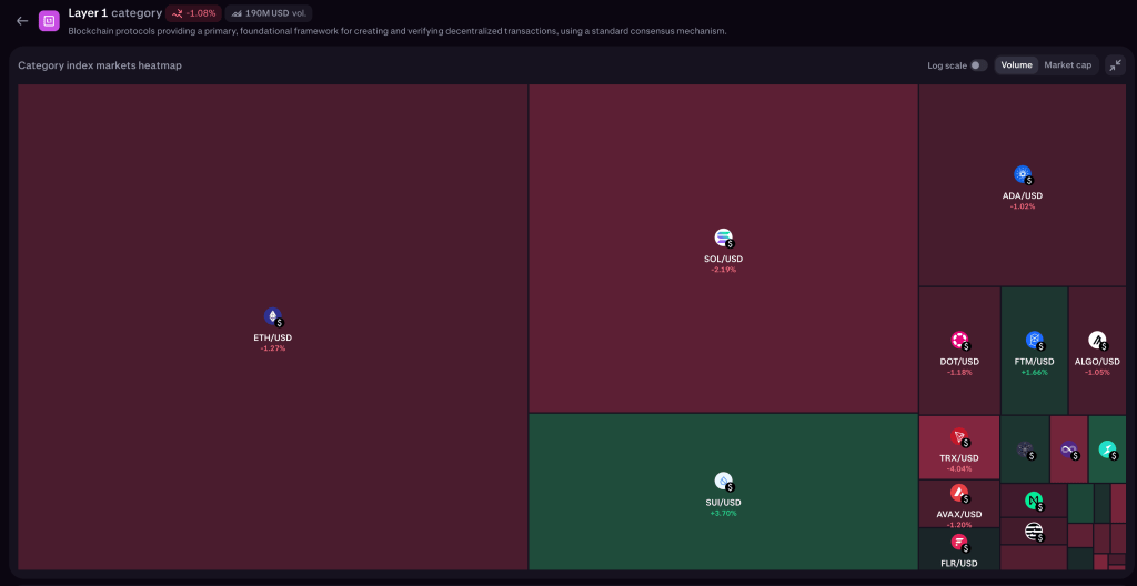 类别指数市场热力图:深入了解单个类别的内部运作。以简洁易懂的布局追踪每项成分资产的 24 小时表现。