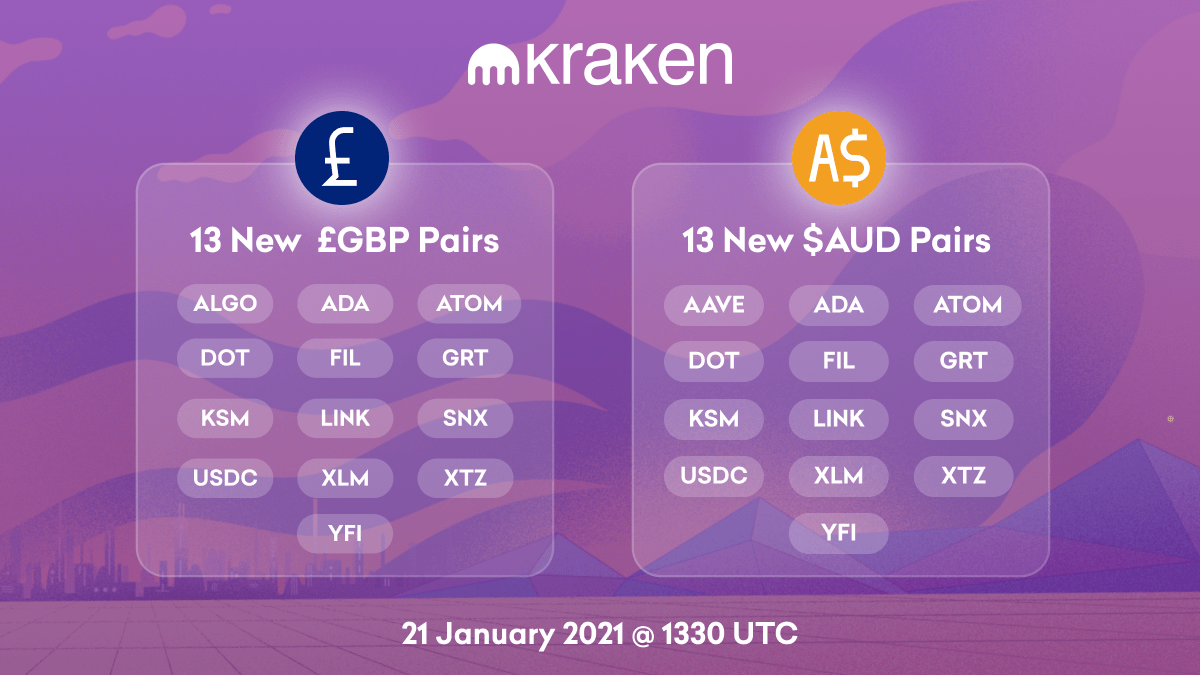 Kraken 新增 14 种资产的英镑和澳元交易对